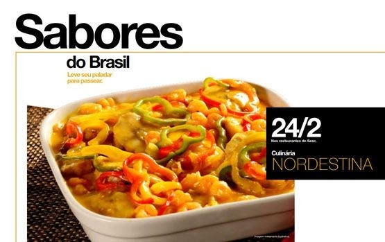 As delícias da gastronomia nordestina, uma das mais variadas e intensas do país, são destaques da próxima edição do Festival Sabores do Brasil, que acontece neste domingo, 24 de fevereiro, no almoço dos Restaurantes do Sesc Santa Catarina. O menu traz preparações especiais como: Salada baiana de frango com coco; Baião de dois; Canjica salgada com calabresa; Rabada; Moqueca baiana; Bolo de noiva pernambucano; e Cocada mole de coco com maracujá na sobremesa.