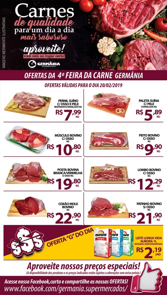 Ofertas Germânia Supermercados para esta 4ª Feira da Carne, dia 20/02/2019