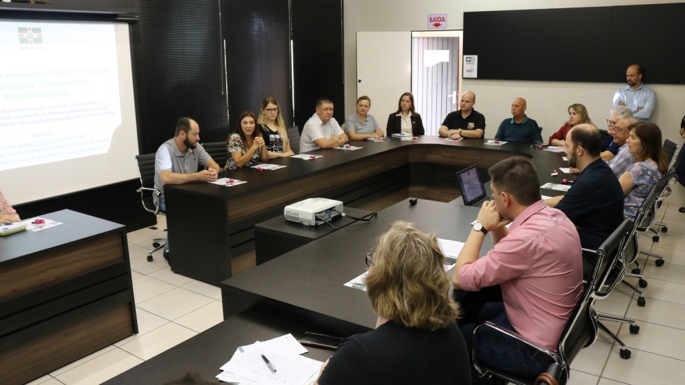 Nesta quarta-feira, a convite do Núcleo dos Profissionais de Contabilidade da Associação Empresarial de São Bento do Sul - ACISBS, a secretária de Finanças do município, Rosilane Zélia dos Santos, juntamente com o chefe de divisão do setor de arrecadação, Robson Gottardo, estiveram apresentando as alterações no portal de ambiente virtual do município em decorrência do Decreto 1225/2019, que regulamenta a expedição de alvará de localização, instalação e funcionamento no município de São Bento do Sul por meio eletrônico.