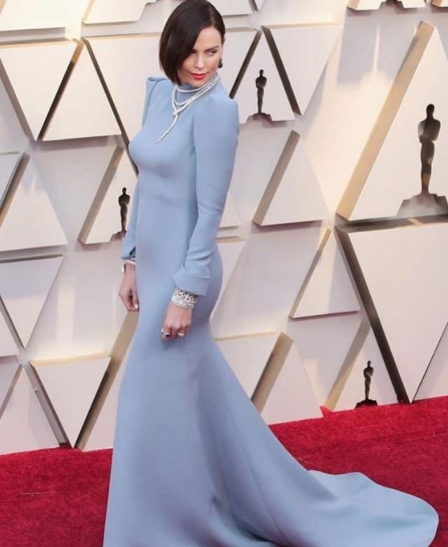 Ainda nos tons claros, Yalitza Aparicio Martínez e Charlise Theron estavam muito elegantes. “Adoro um look minimalista onde as joias são protagonistas”, diz Luciana.