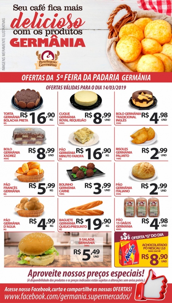 Ofertas Germânia Supermercados para esta 5ª Feira da Padaria, dia 14/03/2019