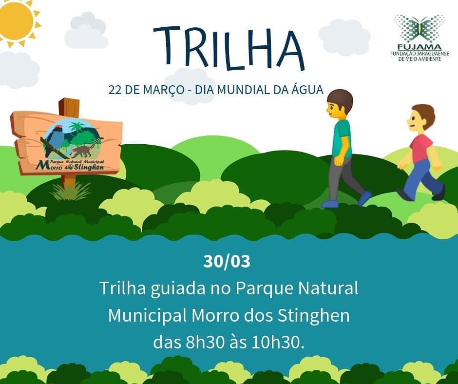 A Fundação Jaraguaense de Meio Ambiente está com inscrições abertas para mais uma trilha no Parque Natural Municipal Morro dos Stinghen. A ação está programada para este sábado (30), no horário das 08h30 até as 12 horas. As inscrições são gratuitas e a trilha guiada dará a oportunidade ao participante de conhecer o Parque e a importância do bioma Mata Atlântica, vegetações nativas e espécies de fauna. A ação faz parte das comemorações do Dia Mundial da Água – 22 de março.
