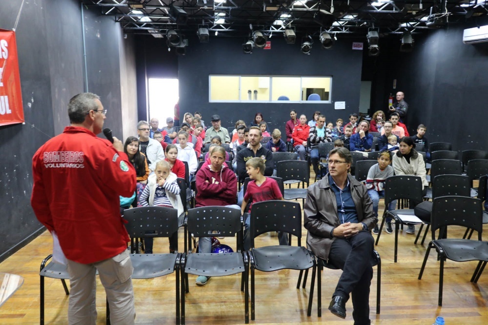 A manhã de sábado foi marcada pela Aula Inaugural do curso de Bombeiro Voluntário Mirim, realizada no anfiteatro da Praça CEU das Artes - Centro de Artes e Esportes Unificados João Roesler, no bairro Serra Alta.