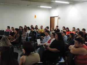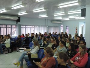 A conferência sobre o Desafio da Enfermagem foi realizada em seguida pela coordenadora de Atenção Primária da Secretaria de Saúde de Benedito Novo, Alexandra Stortti, que falou da PNAB e o que vem mudando, além de mostrar algumas das funções dos municípios. Em seguida, foi iniciada uma Mesa Redonda com a participação da presidente do Coren/SC, junto com Fernanda Vicenzi, apoiadora do Conselho dos Secretários Municipais de Saúde (Cosems) na região e Marcos Maeyama, doutor em Saúde Coletiva. Durante a tarde, os profissionais participaram de oficinas com Alexandra Stortti sobre o Programa Qualifica APS e com as representantes da Secretaria Municipal de Saúde de Blumenau Cleusa Marchioro e Simone Rodrigues, que focaram na Atenção Integral às Pessoas em Situação de Violência Sexual.