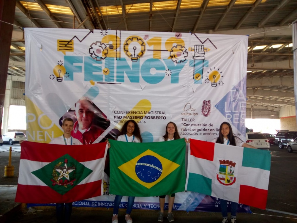 Estudantes do Grupo Vida, da Escola Municipal de Educação Básica Luiz Gonzaga Ayroso, localizada no Bairro Jaraguá 84, em Jaraguá do Sul, estão de retorno do México, onde participaram da 19ª Feira Internacional de Inovação, Ciência e Tecnologia (Feincyt), no estado mexicano de Oaxaca.