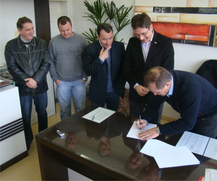 Rio Negrinho - Na manhã de segunda-feira, no gabinete do prefeito Osni Schroeder, aconteceu a assinatura de contrato com o Badesc (Agência de Fomento do Estado de Santa Catarina). Presentes o presidente do Badesc, Nelson Santiago, o deputado estadual Darci de Matos, o vereador Arlindo André da Cruz e secretários municipais. Na ocasião o prefeito Osni assinou o contrato para liberação de recursos que serão investidos em obras de pavimentação asfáltica de vinte e duas vias públicas, localizadas em diversos bairros do município, e também a construção de duas praças de lazer.