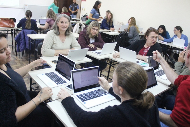 A auxiliar de biblioteca Glacemi Loch, da Escola Ribeirão Cavalo, acredita que o uso dos chromebooks vai ajudar na organização das atividades da biblioteca. Ela e as colegas do treinamento criaram um formulário on-line, com o aplicativo Formulários Google, para conhecer melhor os gostos de leitura dos alunos com que convivem todos os dias na escola. O treinamento acontece durante o período da manhã e da tarde. Nesta quarta, com os diretores; e na quinta, com os coordenadores.