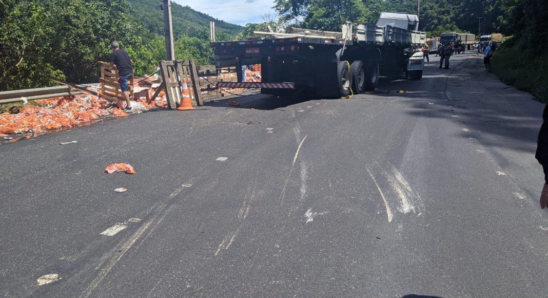 Segundo a PRF, parte da carga foi transportada para outro caminhão e outra foi cedida pelos proprietários para populares. Os dois homens foram encaminhados para a Delegacia da Polícia Civil em Rio do Sul.