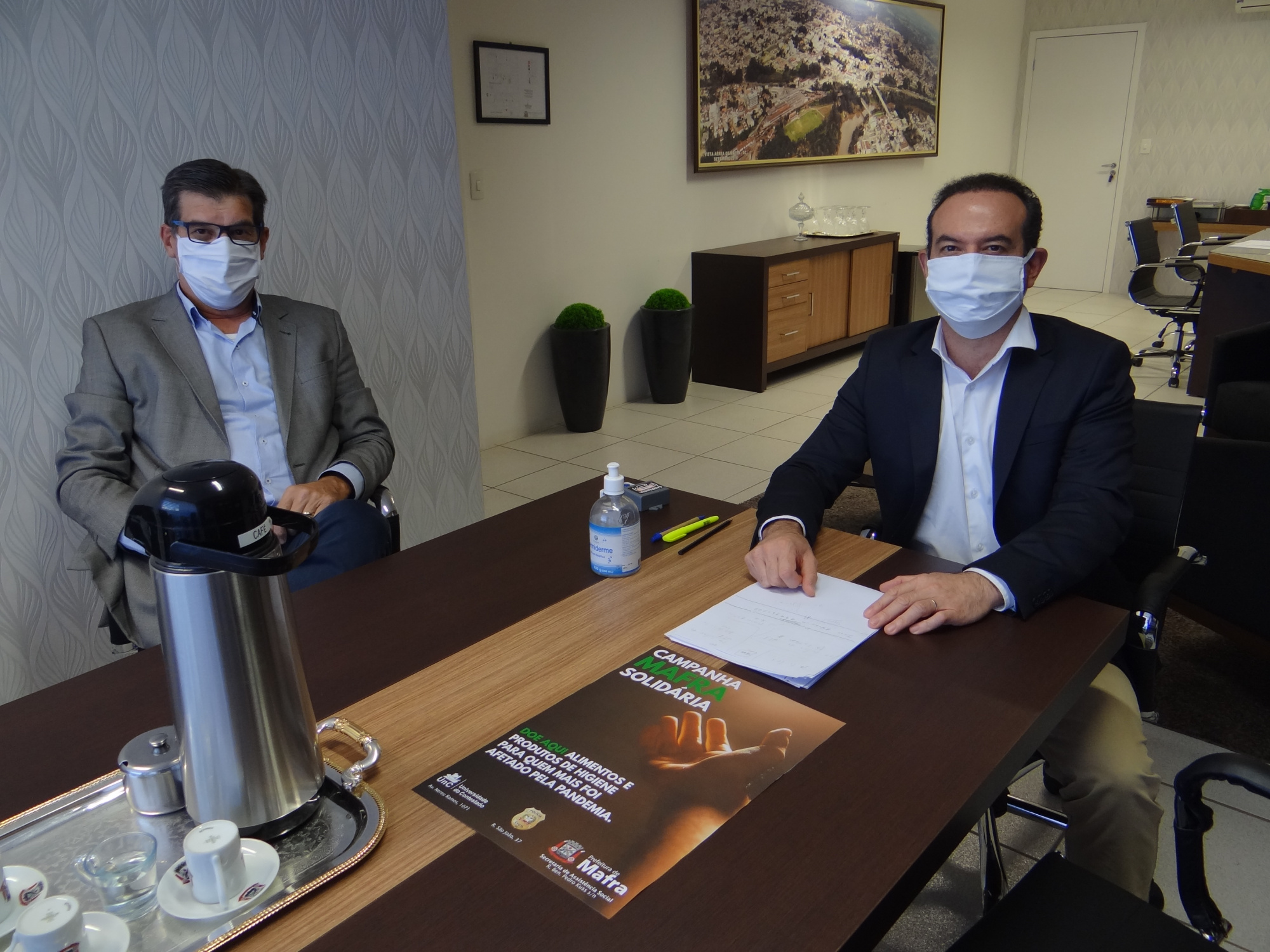 Para iniciar a campanha com força total, o prefeito Wellington Bielecki recebeu, na tarde de quarta-feira, 15, o diretor da Calbos, Carlos Oslaj, que confirmou a doação de 300 cestas básicas ao município. “Estamos passando por vários momentos desafiadores nesta pandemia”, disse o prefeito. “A doação da Calbos é mais uma inestimável contribuição para muitas destas famílias em situação emergencial. Já realizamos a doação de 1.000 kits para as famílias de crianças na rede pública de ensino, beneficiárias do Programa Bolsa Família. E conseguimos agora, junto a vários parceiros, como a Polícia Civil e a UnC, desenvolver esta campanha possa ajudar as pessoas com vulnerabilidade já existente e aquelas que deixaram o seu trabalho devido ao isolamento social e que entraram neste quadro, não conseguindo nem mesmo adquirir o seu próprio alimento”, destacou Wellington Bielecki. “Sabemos o quanto a população mafrense é solidária e temos certeza de que a campanha será abraçada por todos”, concluiu.