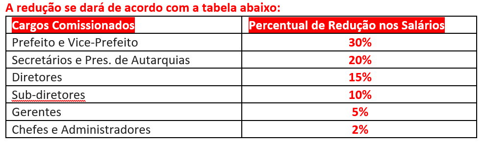 • Câmara de Vereadores também promoverá cortes