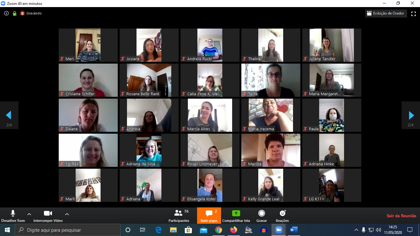 No mês de maio a Secretaria Municipal de Educação, por meio do Departamento de Programas e Projetos, TI (Tecnologia da Informação) e NTM (Núcleo de Tecnologia Municipal), está realizando mais uma capacitação on-line por meio do Aplicativo ZOOM para aproximadamente 500 professores e profissionais da educação da Pré-escola, Ensino Fundamental, Educação de Jovens e adultos e Centro para Autismo.