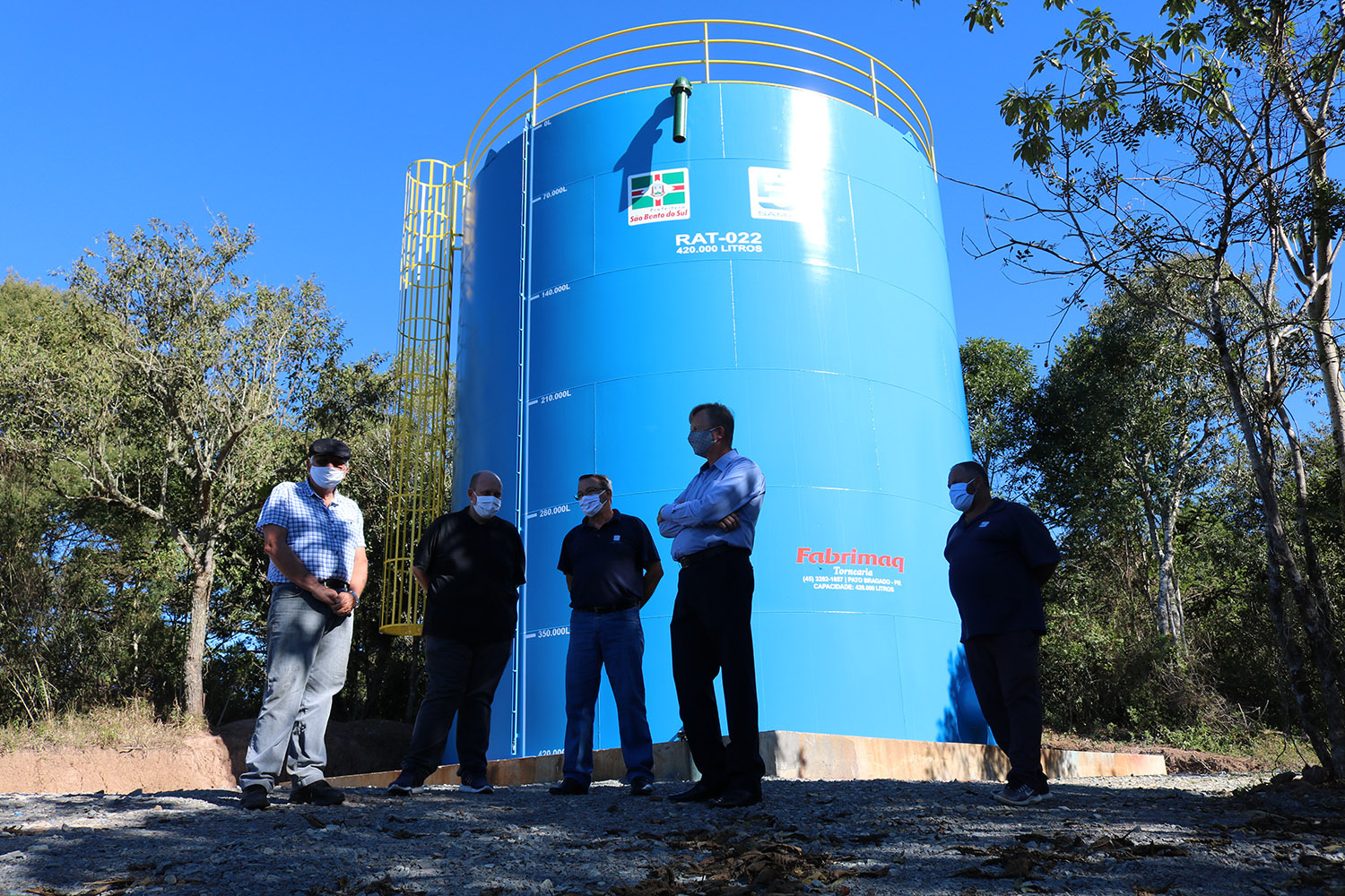 No ato de entrega estiveram presentes o prefeito Magno Bollmann, diretor presidente do Samae Fridolino Van Den Boom, diretor técnico do Samae Luis Sérgio Ferreira, analista técnico do Samae Marco Rodrigo Redlich e assessor técnico do Samae Gerson Luiz Ramos.
