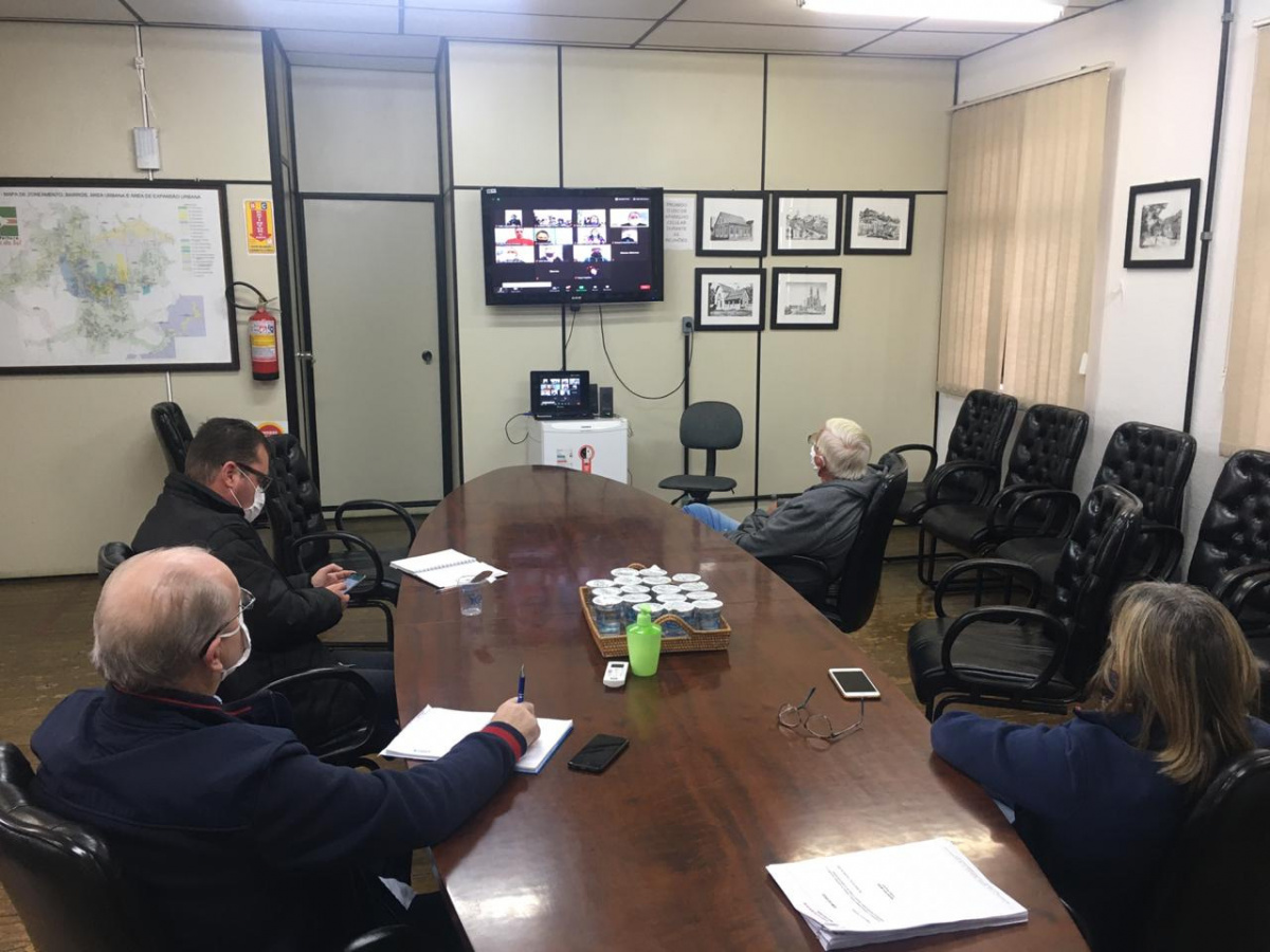 Na manhã desta segunda-feira, dia 1°, ocorreu mais uma reunião por videoconferência com o Comitê de Crise covid-19, para debater sobre a volta do transporte coletivo, dentre outras atualizações relacionadas ao coronavírus em São Bento do Sul.