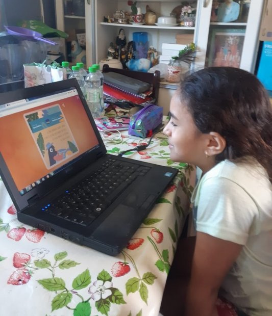 Em diferentes cenários, o professor conta histórias para gerar prazer nas crianças pelo texto e, a partir daí, mobilizar ações que resultem em letramento literário. O desafio tem sido manter a motivação das crianças nas ações sem a mediação direta do professor. O educador conta que as relações com os pais modificaram-se bastante durante o período de isolamento social, já que o contato com as famílias passou a ser diário e os professores precisam, além de passar atividades para os alunos, auxiliar os pais na realização dos exercícios, visto que os estudantes ainda não leem. “As famílias têm exercido papel fundamental nessa questão. Estão todos envolvidos e participando, mas é evidente que precisaram passar por adequações de rotina para esse envolvimento. Não é algo resolvido ainda, mas melhora a cada nova orientação”, explica.