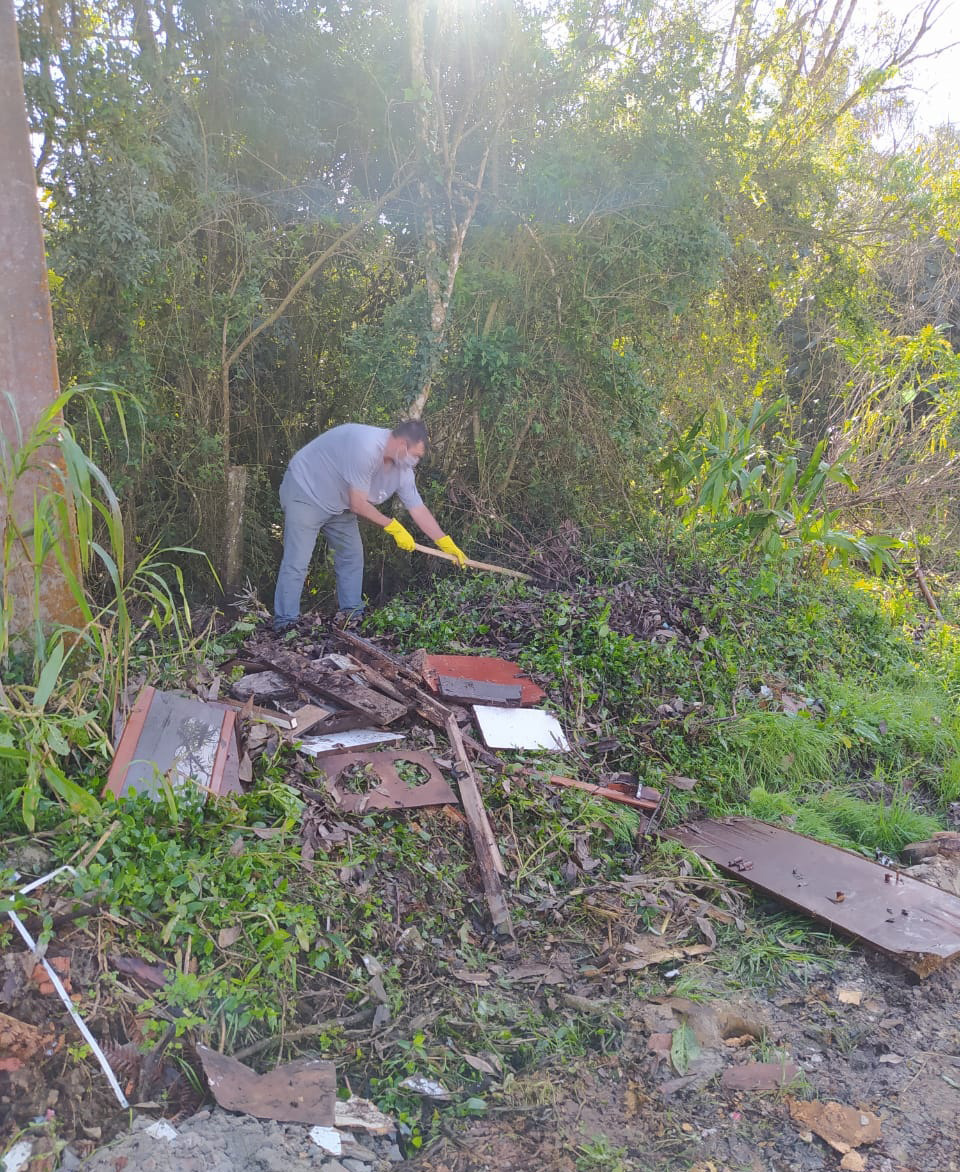 No local, aproximadamente 350 kg de lixo e entulho foram recolhidos. “Larvas de mosquito foram coletadas pela equipe do Programa de Combate à Dengue e quando isso ocorre, é preciso delimitar um raio de 300 metros. Essa área verde faz parte da delimitação e por isso, tivemos pressa em fazer essa limpeza”, contou o responsável pelo setor de limpeza pública da Prefeitura, Valdemar Arnold.