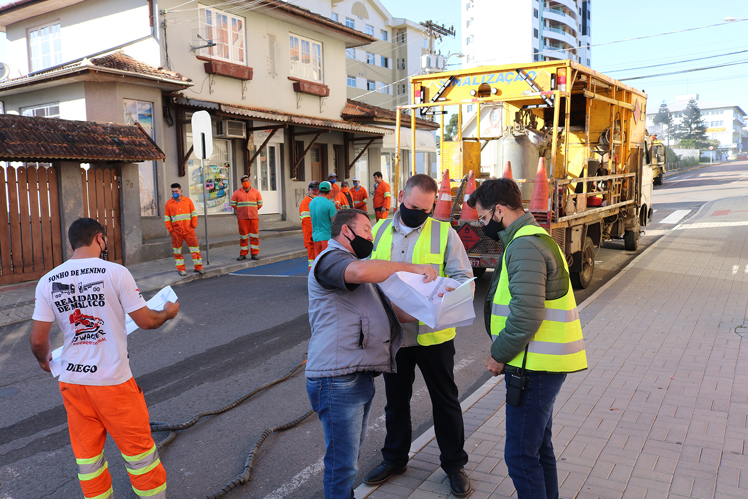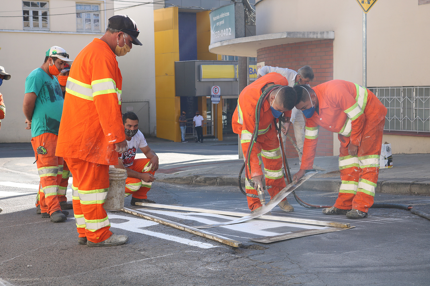 Os trabalhos de sinalização de faixas de pedestres e travessias elevadas estão sendo feitos através da pintura à quente, onde é realizada a demarcação e tem a capacidade de produzir demarcações perfeitamente uniformes de maneira econômica e com mais durabilidade. Além disso, também é totalmente seguro para o operador e outros profissionais envolvidos no procedimento.