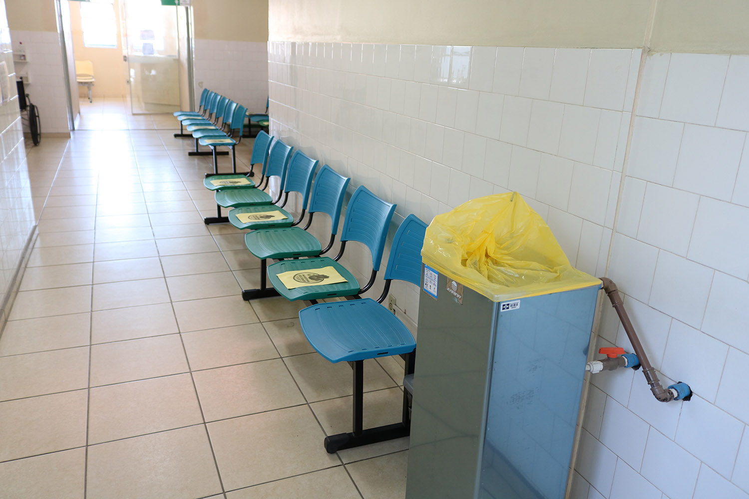 Caso ocorra a situação em que uma segunda pessoa esteja com sintomas respiratórios, esta é conduzida até outra área do Posto Central onde permanecerá isolada das demais pessoas até que seja examinada pelo médico.