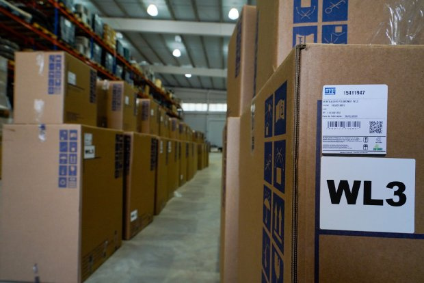No final da tarde de quinta-feira, 30, o Governo do Estado, em mais uma operação, por meio da SES e da Defesa Civil, entregou um lote com 10 respiradores pulmonares WEG para o Hospital Regional de Biguaçu Helmuth Nass, na Grande Florianópolis.