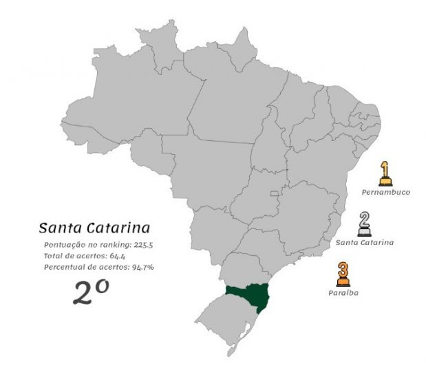 Atrás apenas de Pernambuco, o Estado ocupa a 2ª posição, registrando 225.5 pontos nas categorias de avaliação. “A classificação de Santa Catarina no Ranking comprova a evolução da gestão fiscal responsável do Estado, bem como a melhoria contínua de transparência das informações e visão integrada das gestões orçamentária, financeira e contábil”, afirma a secretária adjunta da Secretaria de Estado da Fazenda (SEF), Michele Roncalio. Na publicação de 2019, com base nos dados de 2018, Santa Catarina ocupava a 7ª posição.