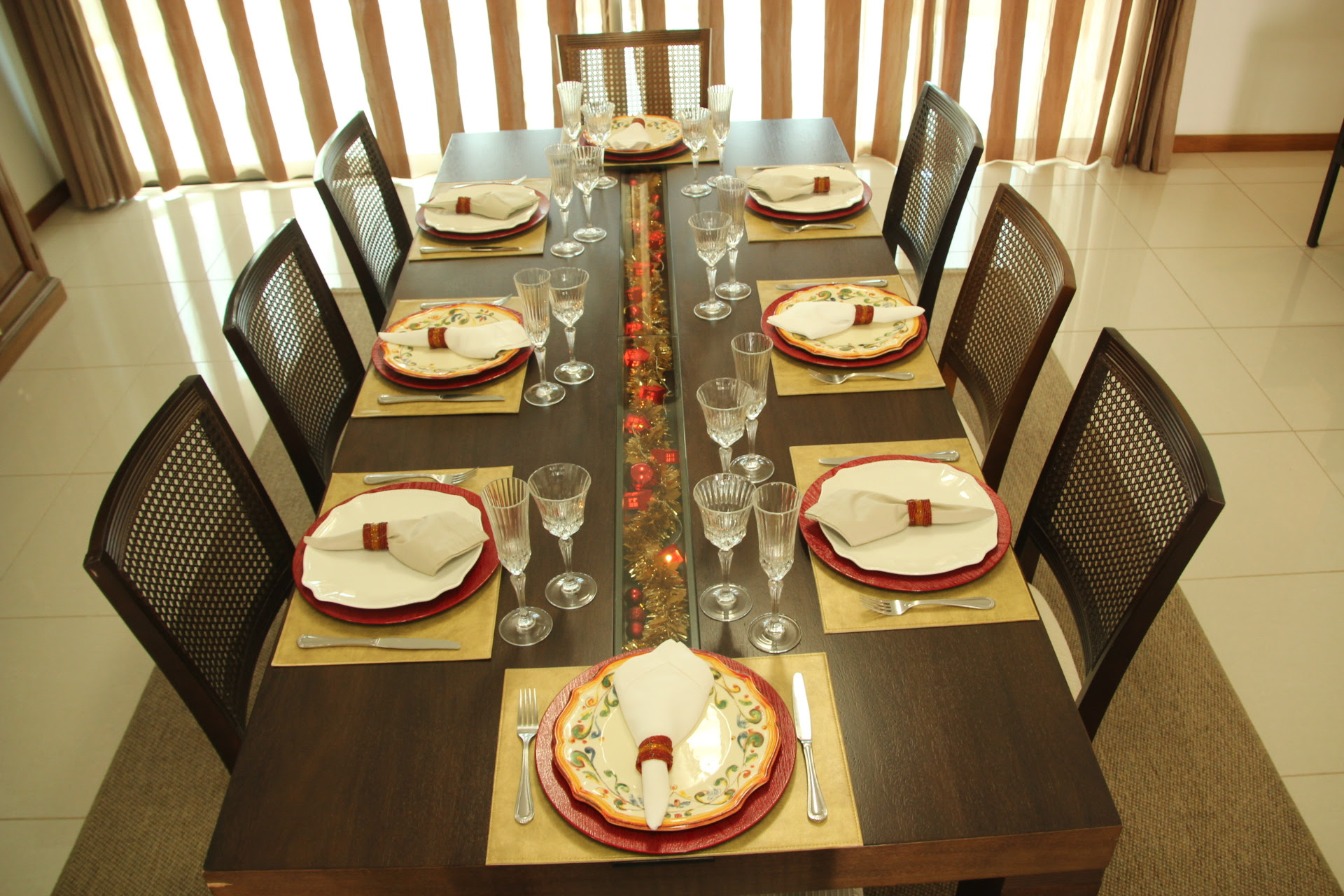 Quando se trata da decoração da mesa em si, é necessário tomar alguns cuidados especiais pelo contato com os alimentos. Evitar enfeites que possam soltar pequenas partes perto das louças que serão utilizadas, pois a ingestão destas partículas pode causar uma reação alérgica ou intoxicação alimentar, por exemplo. “Tente usar enfeites neutros sem brilhos ou que soltem penugem. Deixe para usar brilhos, plumas e o que mais você gostar na área que não vá ter comida. Abuse na árvore”, é a dica do youtuber.
