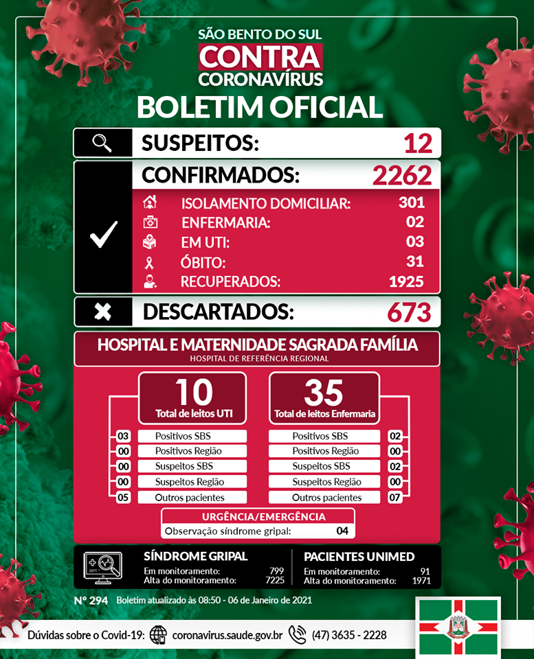 - Positivos Covid-19 São Bento do Sul: 02