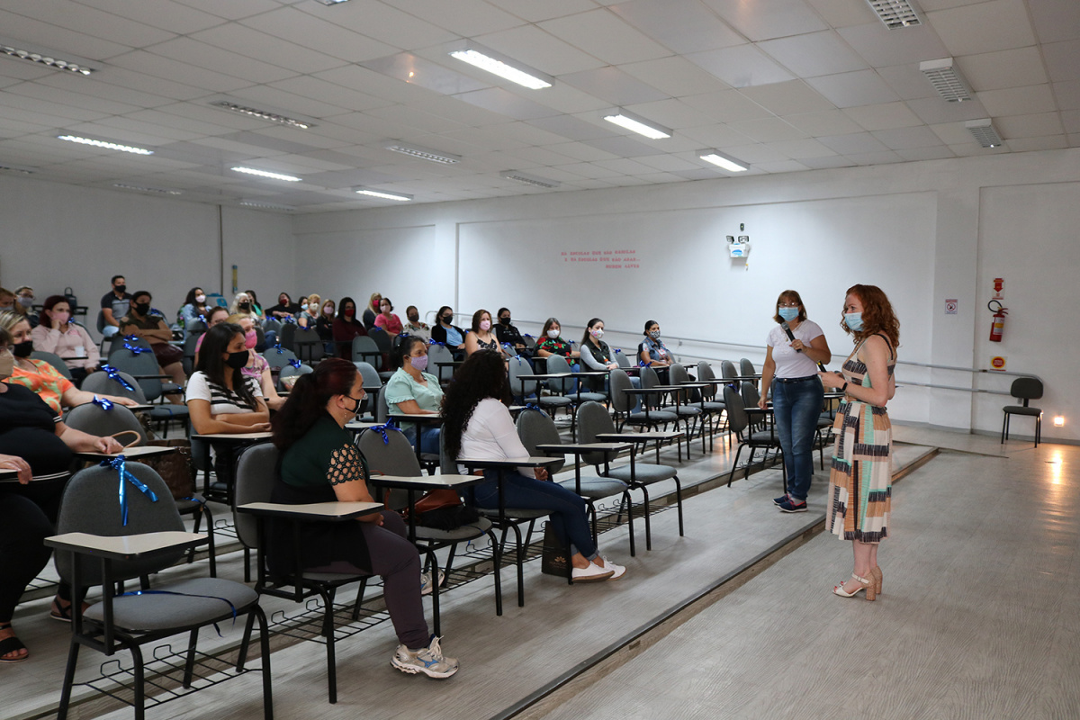 Nesta terça-feira (9) no auditório da Secretaria de Educação as servidoras que atuam nas cozinhas das escolas de educação básica receberam treinamento sobre a manipulação segura dos alimentos.