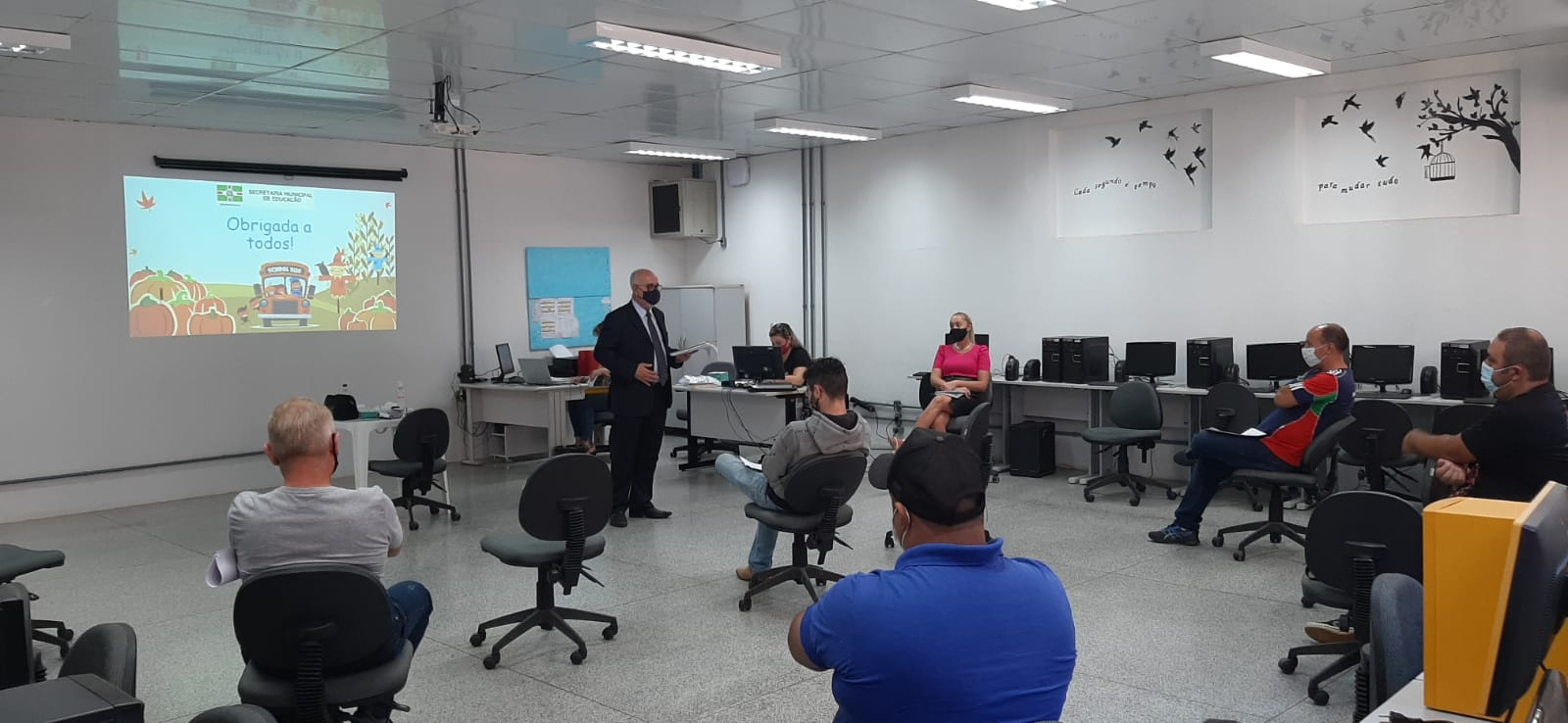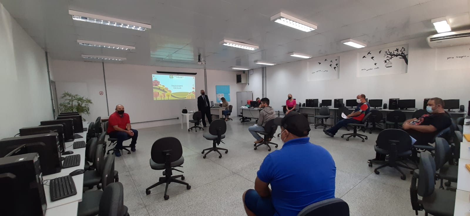 Na última terça-feira, dia 16, foi realizada uma capacitação para os motoristas do transporte escolar da frota própria do município. O objetivo foi repassar orientações e diretrizes sanitárias voltadas a atividade de transporte escolar com a volta das aulas presenciais.