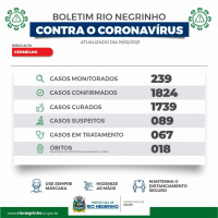 O município de Rio Negrinho registrou 21 novos casos de coronavírus nesta sexta-feira. Agora, o número de confirmações subiu para 1824, tendo a cidade 1793 casos descartados e 1739 pessoas recuperadas.