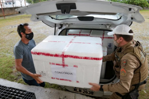 Junto com essa nova remessa de doses, o Estado está enviando as 42.500 da vacina Coronavac/Butantan que chegaram a Santa Catarina no dia 7 de fevereiro e estavam armazenadas na Rede de Frio estadual para garantir a aplicação da D2. Essas doses serão aplicadas naqueles que já receberam a D1 da vacina.