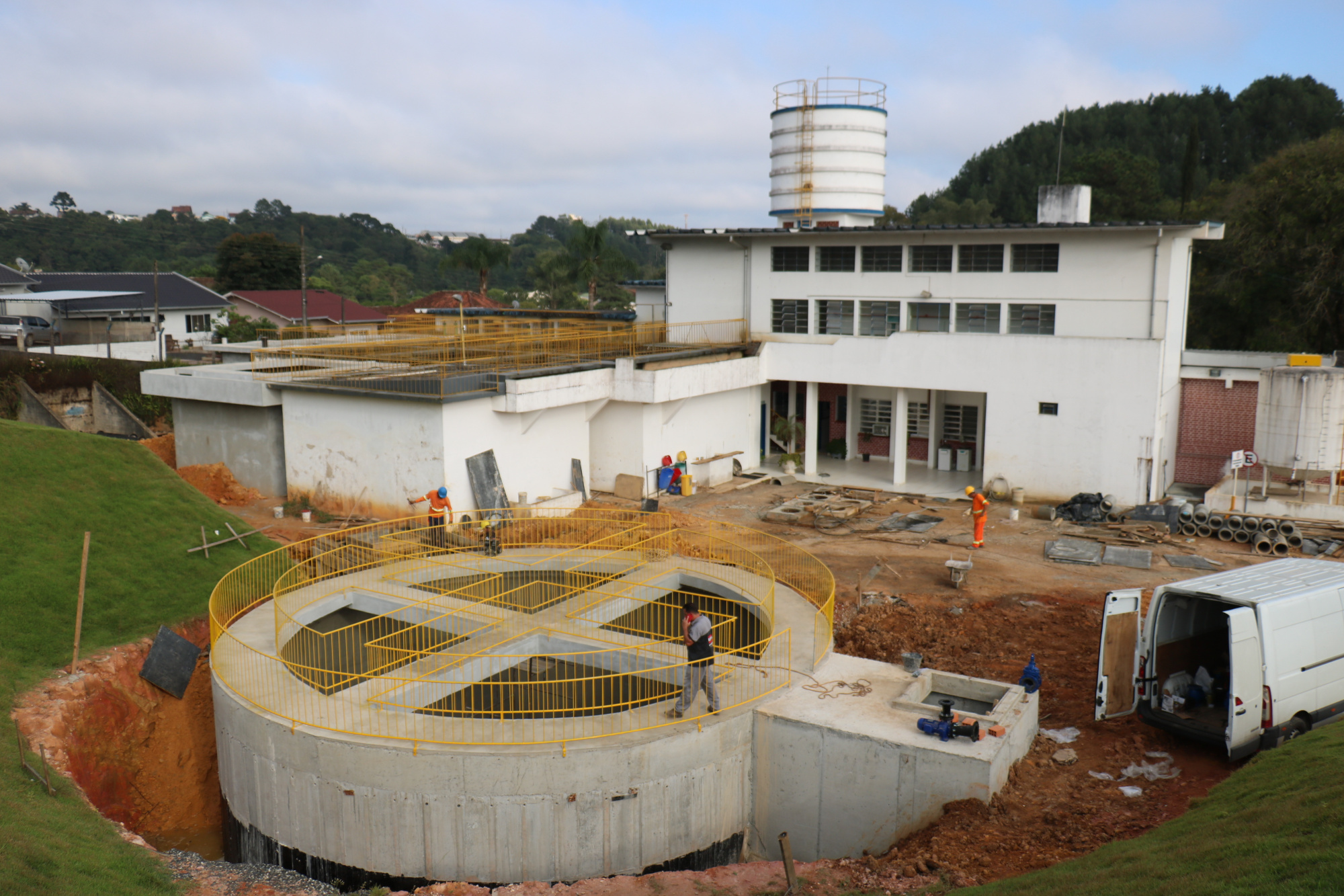 As obras de ampliação no sistema da Estação de Tratamento de Água (ETA) de Rio Negrinho continuam a todo vapor. No local, administrado pelo Samae, ocorre a construção de um novo floculador, dois filtros, um tanque equalizador de tratamento de lodo e a reforma de três tanques de decantação.