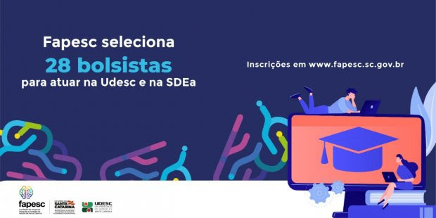 Já os bolsistas da SDE vão atuar no Programa de Apoio à Pesquisa Aplicada na Área Recursos Hídricos do Estado de Santa Catarina para execução de projetos de pesquisa e gestão. São cinco vagas em diferentes áreas com bolsas que variam entre R$ 2 mil e R$ 4 mil para profissionais graduados, mestres ou doutores, com experiência em atividades de pesquisa, desenvolvimento ou inovação. Confira aqui a lista completa de profissões habilitadas. As inscrições vão até 12 de abril.