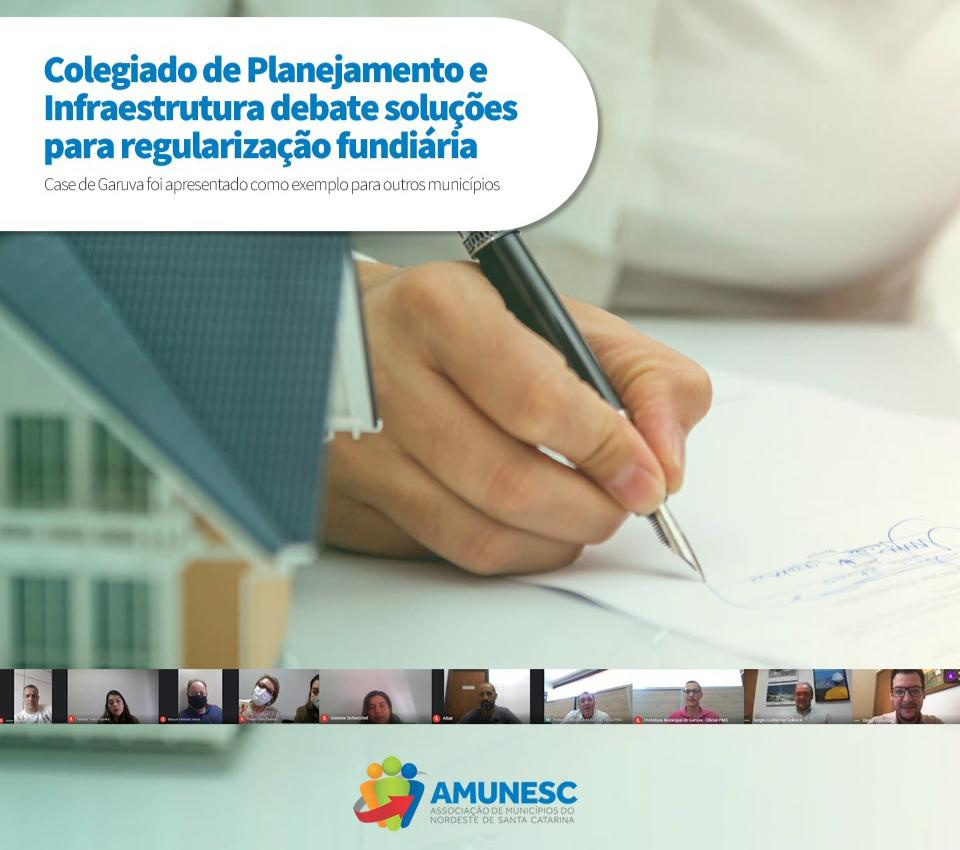 Os secretários de planejamento urbano e infraestrutura dos municípios integrantes da Associação de Municípios do Nordeste de Santa Catarina (Amunesc) se reuniram na manhã desta quarta-feira (24) para debater regularização fundiária. O encontro aconteceu por videoconferência e contou com a participação do procurador geral de Garuva, Dr. Diogo Hinsching, que apresentou a solução encontrada pelo município para agilizar a entrega de escrituras para moradores de áreas irregulares.