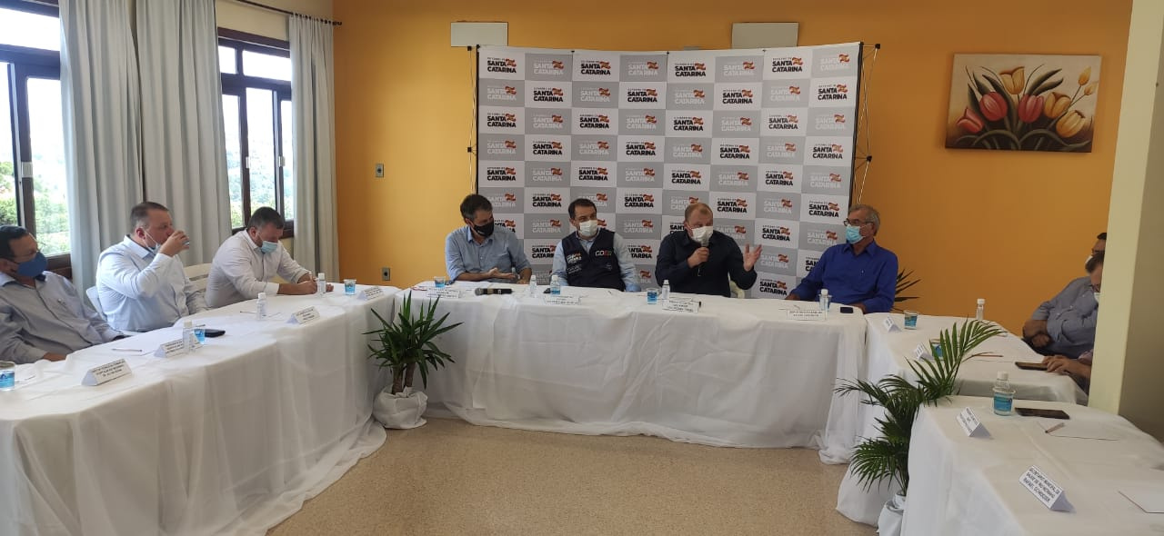 O Governador de Santa Catarina, Carlos Moisés, juntamente com o secretário de Estado de Saúde, André Motta Ribeiro, estiveram nesta sexta-feira visitando as instalações da UTI Covid na Fundação Hospitalar de Rio Negrinho. Eles foram recepcionados no local de pouso pelo prefeito Dr Caio Treml, pelo deputado estadual Ricardo Alba, secretário de Saúde municipal Rafael Schroeder e pelo médico Julyan Baum Vegini, diretor técnico do hospital.