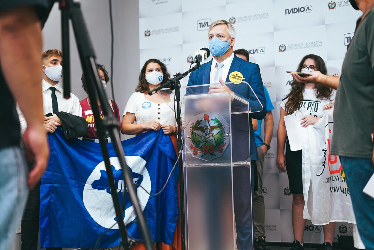 O projeto foi protocolado, nesta terça-feira (31), depois de o parlamentar conversar com estudantes da UJS (União da Juventude Socialista), da UCE (União Catarinense dos Estudantes), UBES (União Brasileira dos Estudantes Secundaristas), UNE (União Nacional dos Estudantes), do Coletivo Afronte, na Assembleia Legislativa.