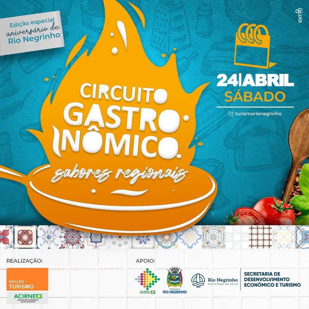 Em comemoração ao aniversário de 141 de Rio Negrinho, inicia neste sábado o Circuito Gastronômico Sabores Regionais em Rio Negrinho. A ação é uma realização do Núcleo de Turismo da Acirne, com apoio da Prefeitura Municipal.