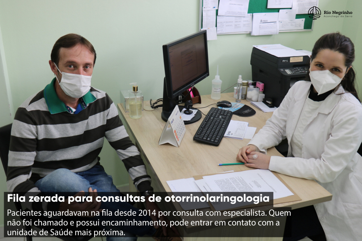 Após sete anos de espera, a fila para consultas com otorrinolaringologista foi zerada em Rio Negrinho. Conforme a Secretaria de Saúde, alguns moradores estavam aguardando por consultas com este especialista desde 2014. Quem não foi chamado, seja por mudança de endereço ou contato, e possui encaminhamento, pode entrar em contato com a unidade de Saúde mais próxima.