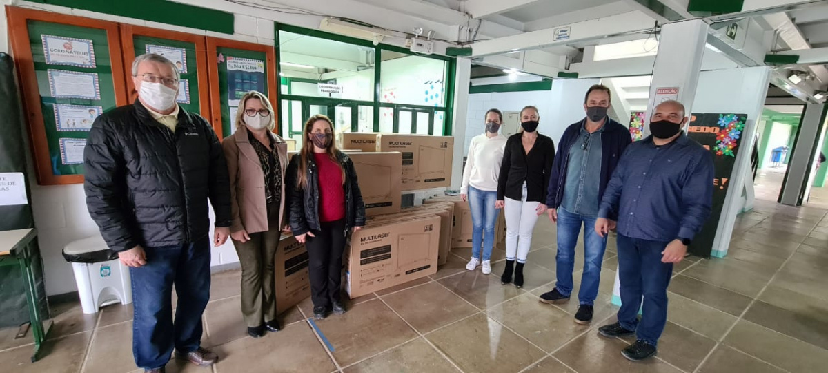 Na tarde de segunda-feira (7) começaram a ser distribuídas as 100 Smart TVs adquiridas pela Secretaria de Educação para serem usadas nas unidades de ensino da rede municipal. Nesta entrega a Escola Básica Municipal Dalmir Pedro Cubas, do bairro Serra Alta, foi contemplada. No mês passado, 10 equipamentos já foram adquiridos, sendo destinados para a EBM Castelo Branco, totalizando até o momento 110 Smart TVs.