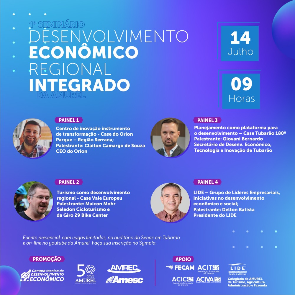 Além das vagas presenciais, o evento também será transmitido pelo canal da Amurel (Associação de Municípios da Região de Laguna), do YouTube. As inscrições são gratuitas e podem ser feitas diretamente na plataforma Sympla, pelo link.