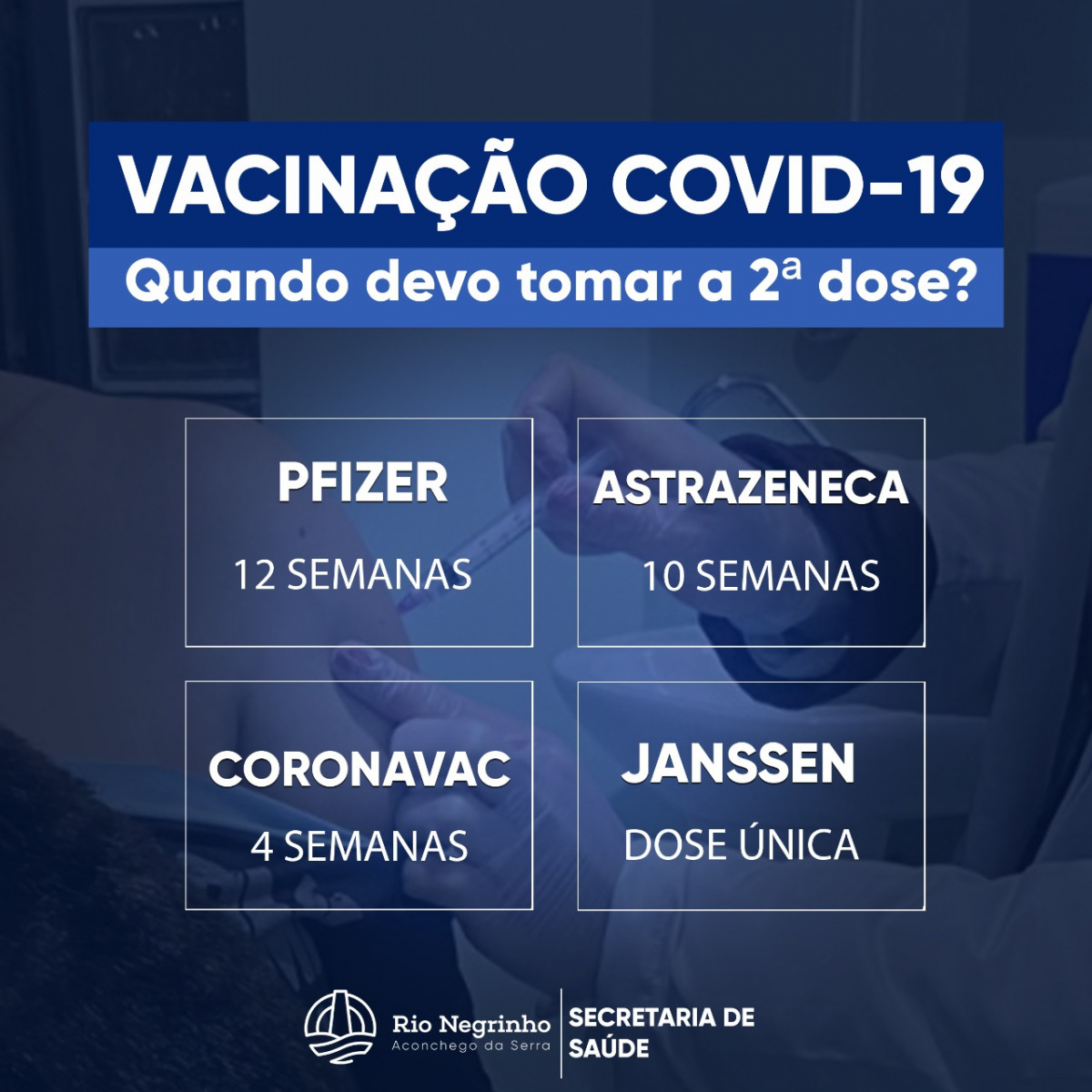 A Secretaria de Saúde de Rio Negrinho alerta que são falsas as informações de que fabricantes adiantaram a segunda dose da vacina contra a Covid-19. Apenas a AstraZeneca reduziu o intervalo de 12 semanas para 10 semanas!
