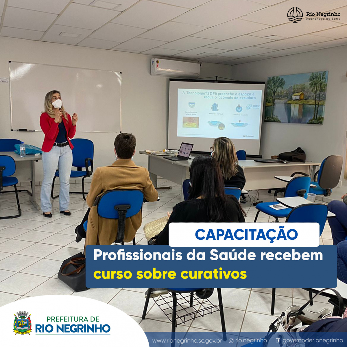 As equipes de Saúde de Rio Negrinho receberam na tarde de hoje uma capacitação sobre a confecção de curativos. Conforme Fernanda Alexi, coordenadora das unidades, o curso foi voltado para todos os profissionais da Secretaria de Saúde, dos postos, médicos e enfermeiros.