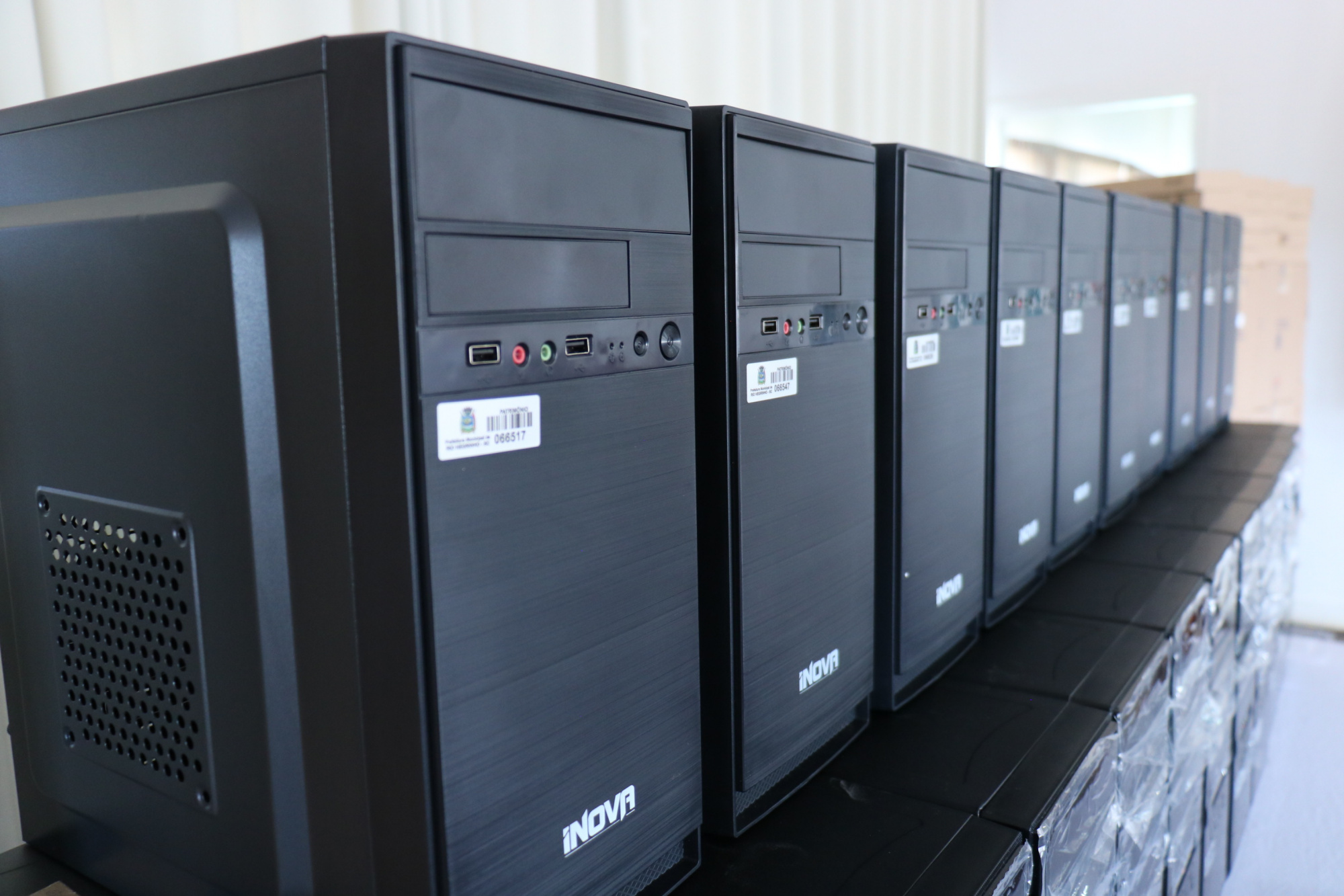 O prefeito Dr Caio e o vice-prefeito Pablo Ribeiro realizaram nesta tarde a entrega de 100 novos computadores para todas as escolas e CMEI’s de Rio Negrinho! A aquisição, com recursos próprios da Prefeitura, faz parte do Plano Municipal de Inovação e Tecnologia. São 85 computadores para as escolas municipais, sendo cinco para cada unidade, e 15 computadores para os CMEI’s, sendo um para cada unidade para uso administrativo. O investimento é de R$ 216.104,15.