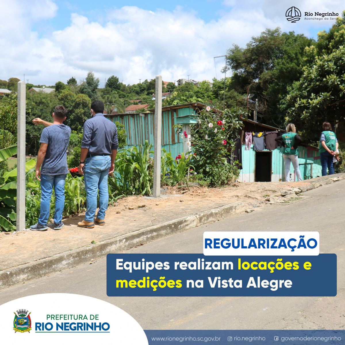 Equipes da Secretaria de Habitação e Promoção Social iniciaram nesta semana os trabalhos de locação e medição em uma área do bairro Vista Alegre. O quadrante em questão está passando por programa de regularização fundiária. Nesta etapa, os profissionais estão delimitando a área pública remanescente de preservação ambiental e cercando estes espaços, onde será feito plantio de vegetação nativa.