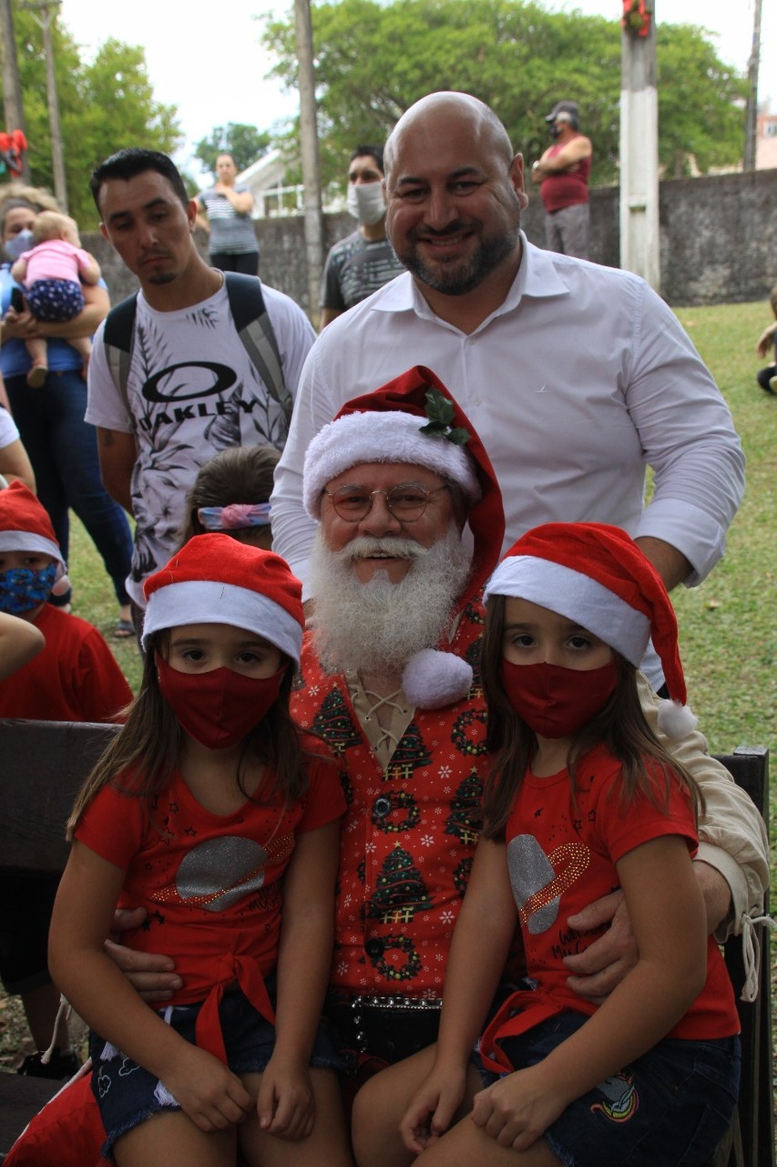 Na Praça do Passo a alegria da comunidade foi contagiante, com as apresentações das crianças e a tão esperada chegada do papai Noel. O Prefeito Emerson Maas acompanhou a festa, destacando a importância de levar o espírito natalino aos bairros. “Queremos que a comunidade participe também, pois quando a comunidade está presente tudo fica mais bonito, mais alegre”, declarou. Ele lembrou que o ano passado o Natal foi triste por não se poder estar junto dos familiares e amigos. “Esse ano tudo será muito mais feliz e desejo que seja um ano diferente, afinal podemos nos considerar sobreviventes”, declarou. Ele parabenizou a todos os envolvidos na decoração da Praça, como moradores, escolas, ESF, entidades locais e secretarias municipais.