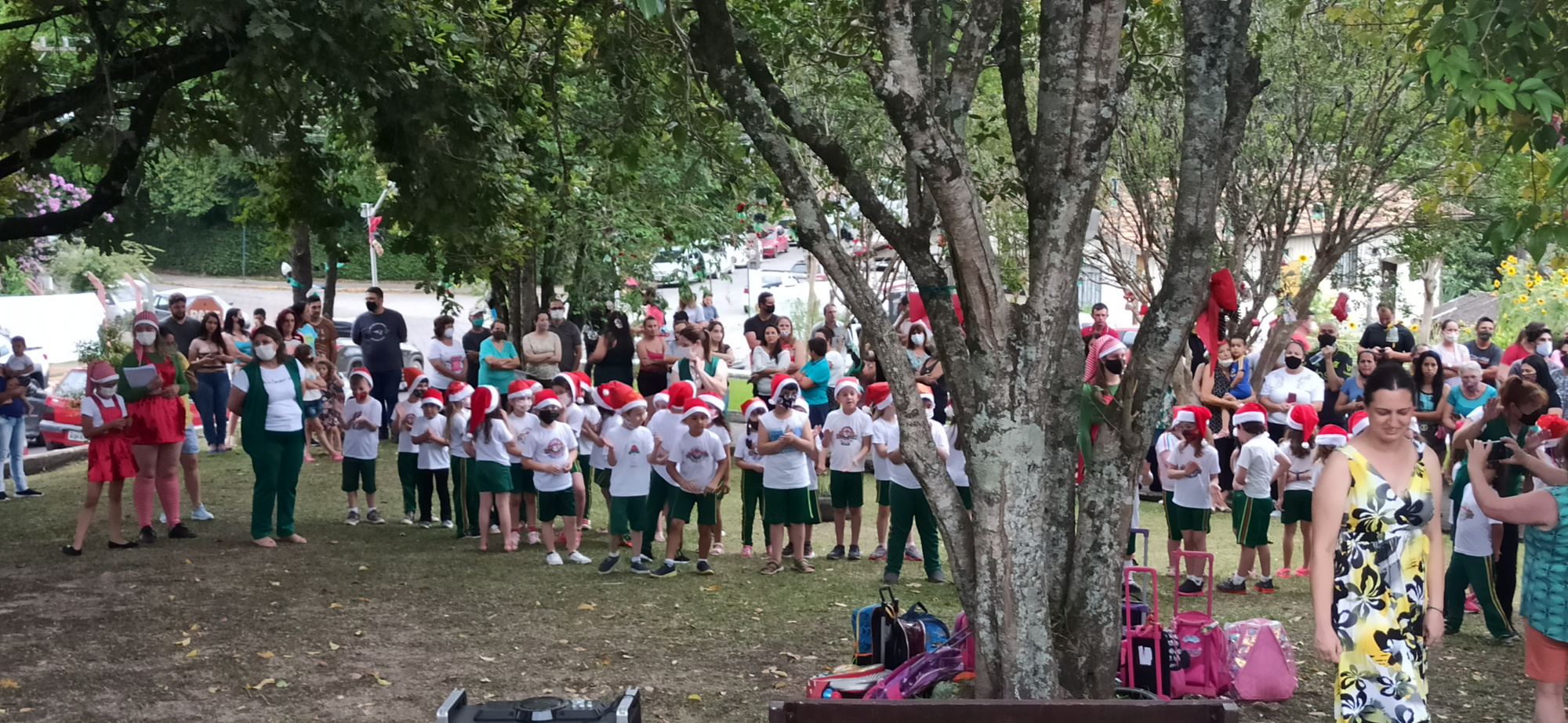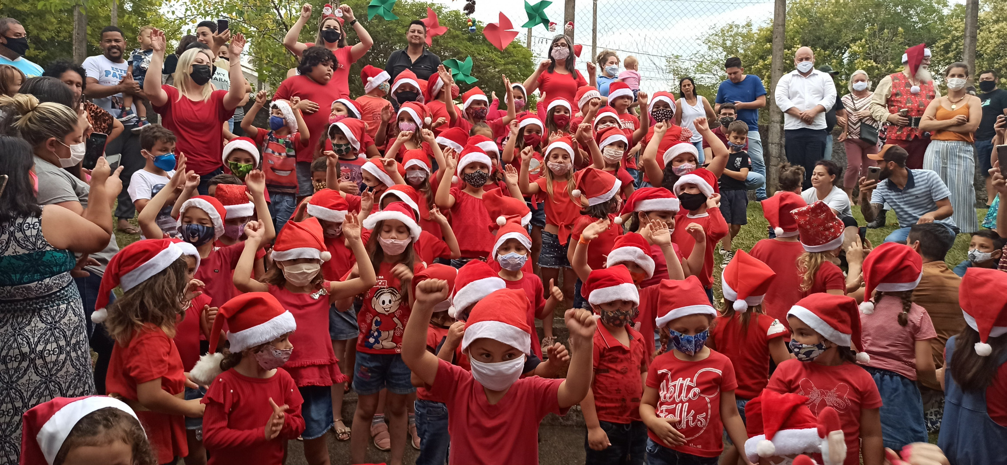 O fim de tarde de segunda-feira foi de alegria e emoção para a comunidade do Passo, com a chegada do Papai Noel e as apresentações de músicas natalinas, feitas pelos alunos dos CEIM Sara Rosa Rodrigues e CEIM Comecinho de Vida “Nathan Alex Ramos”. As festividades nas praças fazem parte do projeto Mafra mais Natal, do Executivo municipal, que visa promover a integração da comunidade nas comemorações natalinas. As ações se repetirão em todas as Praças de Mafra, até o dia 22 de dezembro.