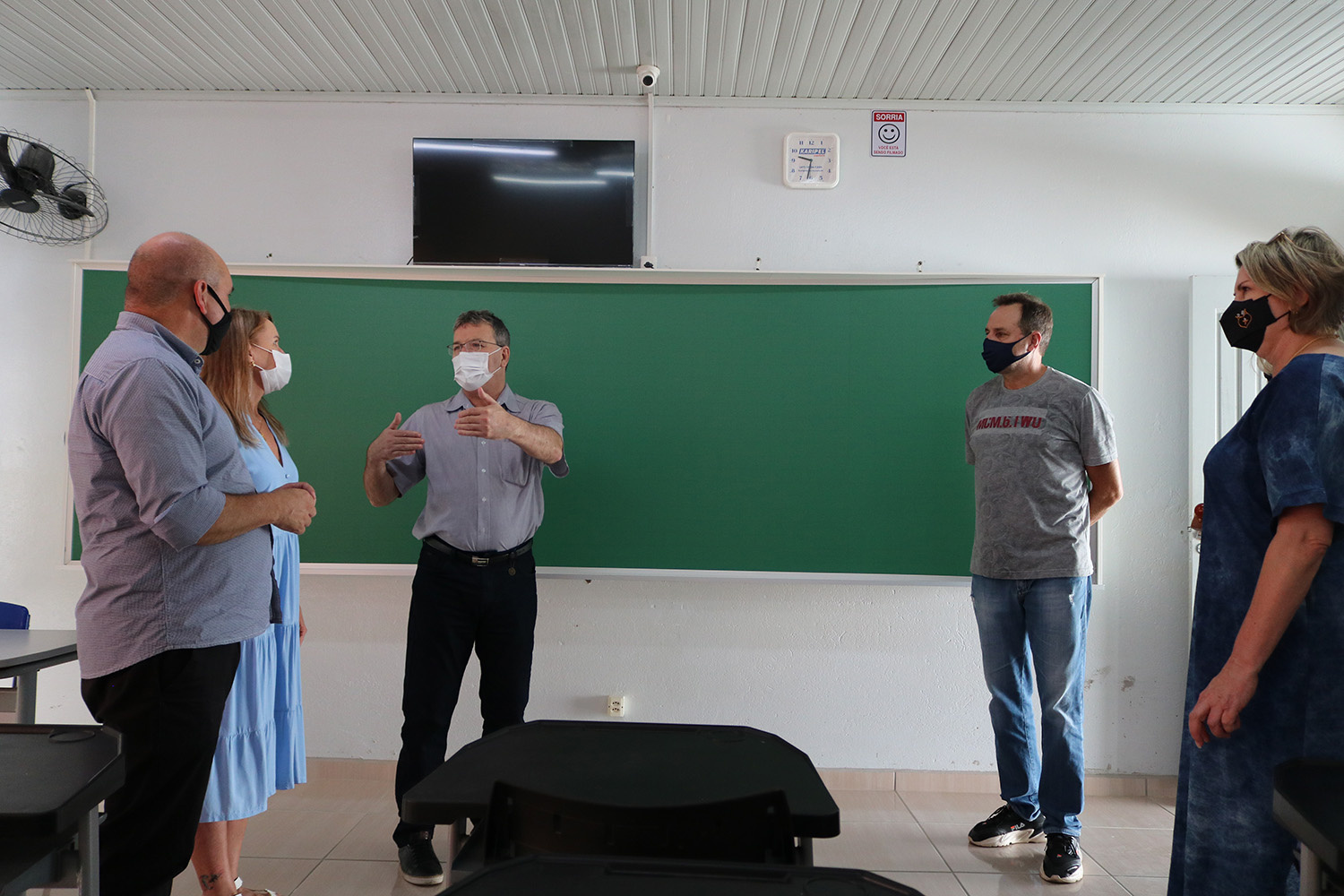 Novos quadros - Após a entrega das mesas, também foi realizada uma visita na EBM Osny Vasconcellos, uma das escolas contempladas com novos quadros côncavos. Ao todo, foram adquiridos 105 quadros para as unidades de ensino, que também serão distribuídas neste primeiro momento na EBM Lúcia Tschoeke, PEM Abelhinha Feliz, EBM Annelize Beckhauser Mallon, EBM Rodolfo Berti, EBM Aracy Hansen, EBM Hercílio Malinowsky, EBM Sophia Schwedler, EBM Maria Waltrudes, EBM Denise Christiane Harms, EBM Garibaldina Fuginaga, EBM Carlos Doetsch, EBM Alexandre Pfeiffer, EBM Baselisse Virmond, EBM Dalmir Pedro Cubas, EBM Castelo Branco, EBM Henrique Schwarz e EBM Alfredo Diener.