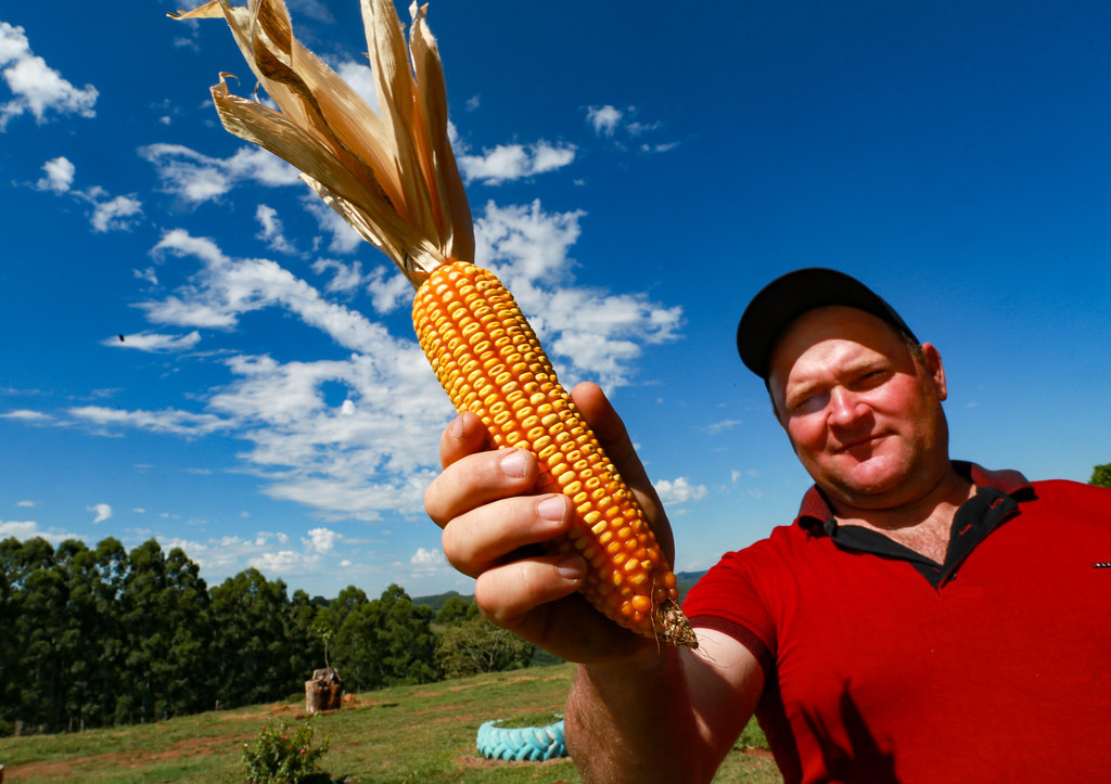 O produtor rural Leandro Demarco, da comunidade Poço Rico, de Concórdia, colheu em torno de 7 mil sacas de milho, em uma área de 68 hectares, no ano passado. Para o início do plantio, o agricultor contou com a ajuda do Programa Terra Boa do Governo do Estado, que disponibilizou recursos para a compra das sementes e também para o calcário.