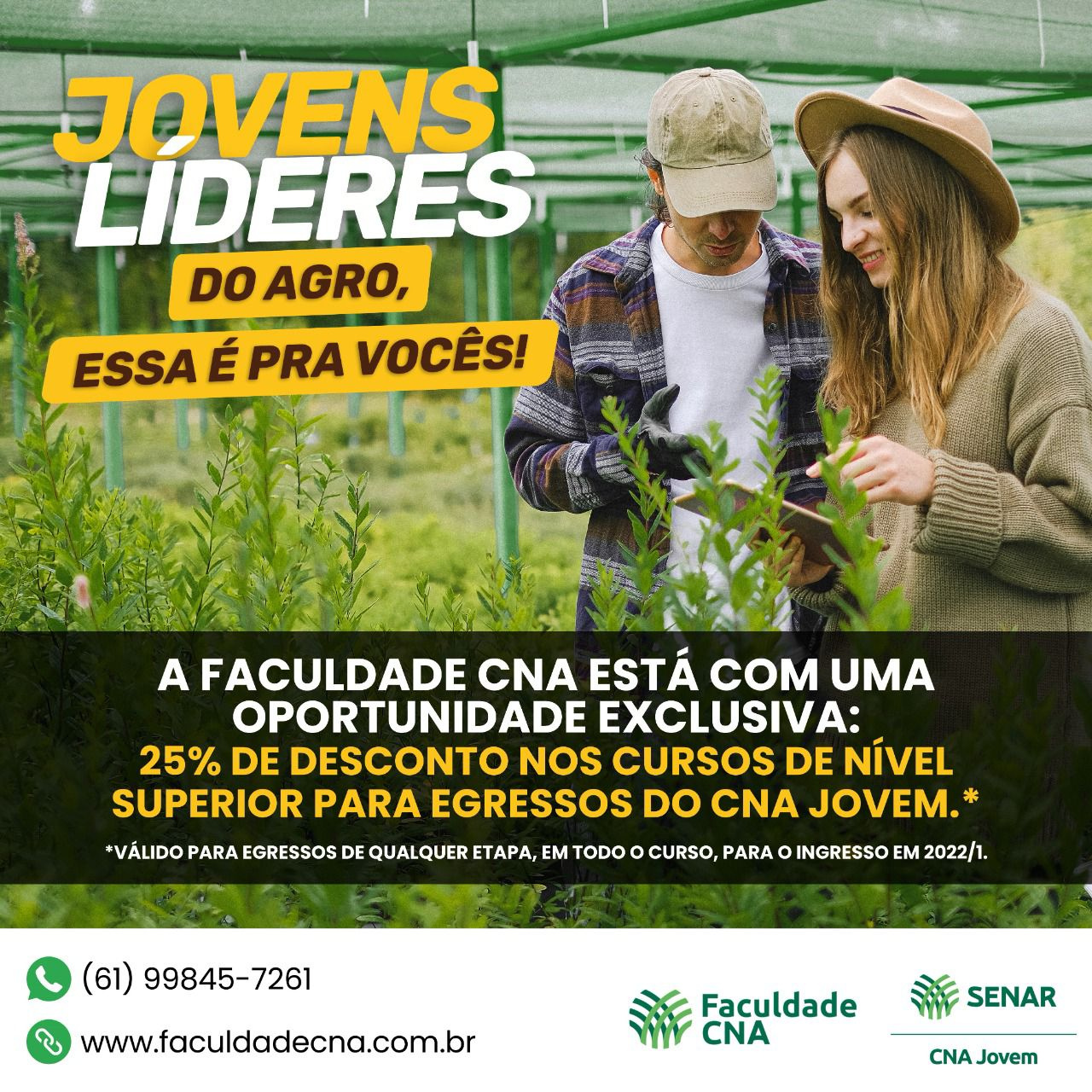 As inscrições para o vestibular dos cursos superiores tecnológicos (a distância) da Faculdade CNA para o primeiro semestre de 2022 encerram nesta quarta-feira, dia 23 de fevereiro. Estão abertas vagas para os cursos de Gestão do Agronegócio, Gestão Ambiental, Gestão de Recursos Humanos e Processos Gerenciais. Quem tiver interesse em uma das vagas pode se inscrever pelo link www.faculdadecna.edu.br.