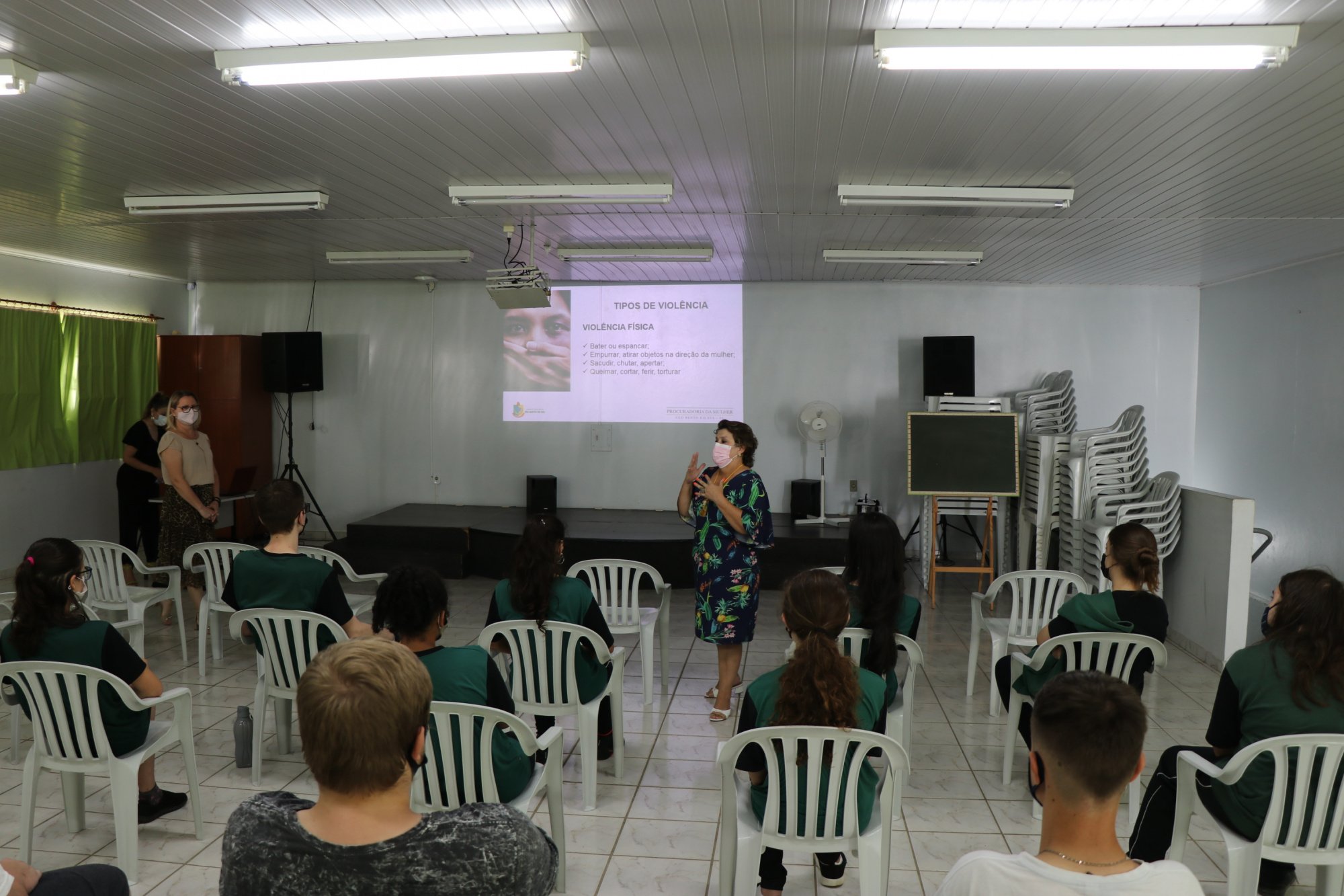 Dando prosseguimento ao Circuito de Palestras da Procuradoria da Mulher, as Vereadoras Terezinha Dybas e Zuleica Voltolini estiveram ontem (09/03) na EBM Coronel Osny Vasconcellos, onde palestraram para um público de aproximadamente 55 alunos do nono ano da referida Escola.