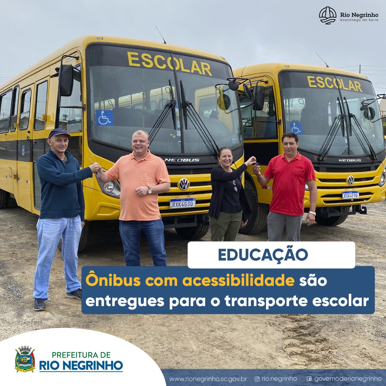 O prefeito Dr. Caio e a secretária de Educação Sandra Mara Brambilla Hacke, realizaram na manhã de hoje a entrega oficial dos novos ônibus para o transporte escolar da cidade.