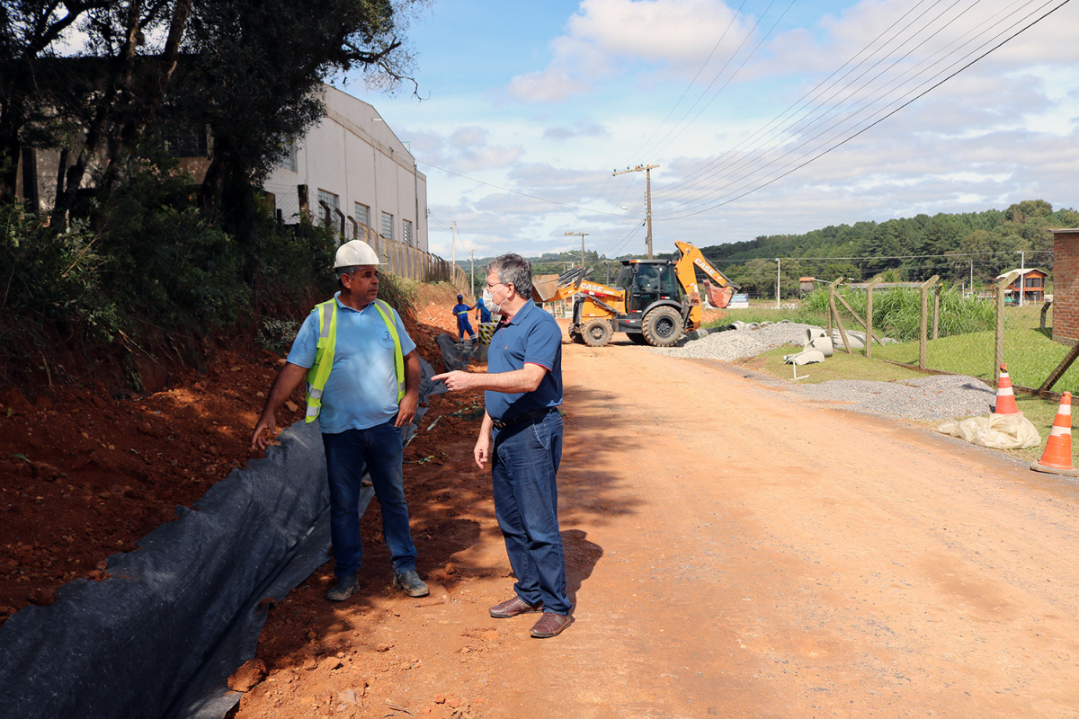 Os trabalhos para pavimentação da rua Adolfo Becker, no bairro Dona Francisca, estão em fase de conclusão para implantação da drenagem. Na segunda-feira (25), o prefeito Antonio Tomazini esteve na via para acompanhar os serviços.